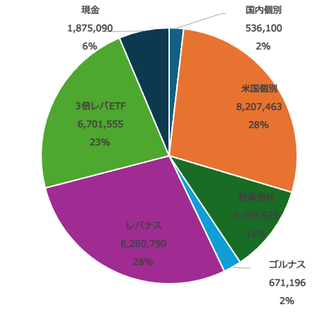 ぐへへ、よく気付かれましたね。今回よりゴルナッスちゃんが仲間入りですわ。金価格の上昇に釣られよもやよもや流行りもののゴルナスをPFに加えるなど!!と仰られる方は素直になってください。ゴールドとナスダック100 これらを等倍で運用する投資信託ですよ、素晴らしいじゃあないですか。私もやっとゴールドの良さに気付くことができました。これからはゴールドを抱きしめて寝ることにします。資産全体のレバレッジは1.76程度とゴルナスを加えたことでレバレッジ比率が少し上がりました。
